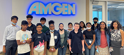 with peers and Amgen leaders. Twenty-four middle and high school students from 18 schools in