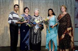 The highlight of the evening was the presentation of The Global Women�s Humanitarian Award. Twenty-three local woman ages 16 to 97 were honored for doing extraordinary things on a global basis. Nathaly Hewawasam was presented the Jr. Women�s Global Humanitarian Award. This Gateway High School student was recognized for her enthusiasm to raise $4,200 on her own for tsunami victims of Sri Lanka and starting the Kids-Aid Society. She continues to sponsor children in this still-devastated region. Barbara Verchot, founder of Wings of Peace, won the Global Women�s Humanitarian Award for her work in Thailand, including the distribution of blankets, encouragement of tribal women�s handicraft co-ops, construction of schools and medical clinics. The Lifetime Achievement Award went to Mary Elmendorf for her work in Mexico as the first female president of CARE and her numerous success stories in bringing freshwater to the marginalized communities of Mexico for over 50+ years.