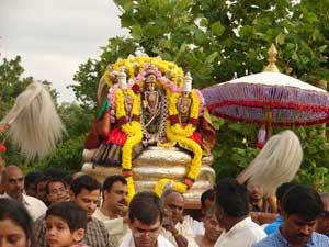 Srinivas Jaragula, president of the executive committee, thanked the volunteers, �without whom this event would not have been a success.� A group of volunteers assembled the essential component of this event � the massive and beautifully carved 1,500-pound Rath/chariot imported from India, while others worked on making garlands and stringing mango leaves for decorations.