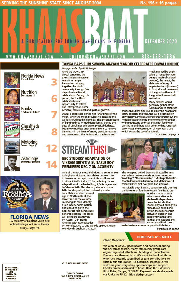 Amid the COVID-19 global pandemic, the BAPS Shri Swaminarayan Mandir in Tampa focused on bringing together the Hindu community through five days of virtual Diwali celebrations. During this period, the traditions celebrated are an opportunity to reflect and introspect on one’s personal, professional and spiritual growth.