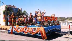 More than 2,000 people attended the first ever Rath Yatra or Festival of Chariots on Jan. 8 in Tampa. The daylong festivities began with a 2-mile procession. Several floats preceded the chariot itself. Idols of Jagannath, his brother Balabhadra and his sister Subhadra were the centerpiece of the rath and were pulled through the streets by devotees. Fifty-one women and children dressed in colorful traditional attire led the rath with kalash on their heads. The devotees were chanting and dancing throughout the entire route of the procession.