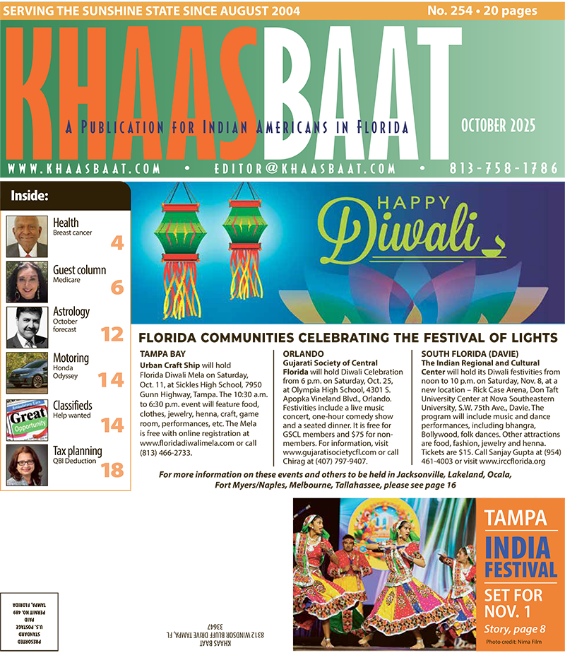 Khaas Baat is proud to be the ONE AND ONLY Sunshine State publication to offer comprehensive coverage of news and happenings in the Florida Indian community. Do follow us on twitter @khaasbaat and join us on Facebook.