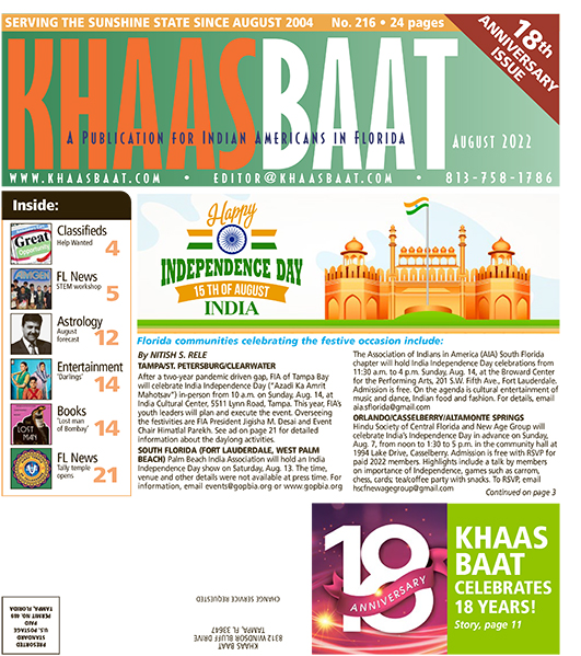 Khaas Baat is proud to be the ONE AND ONLY Sunshine State publication to offer comprehensive coverage of news and happenings in your Florida Indian community. Do follow us on twitter @khaasbaat and join us on Facebook.