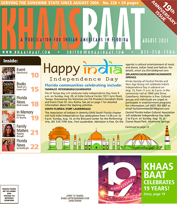 Khaas Baat celebrates another milestone this August. Nineteen years of continuous print monthly since the inaugural issue in August 2004. And toward that, all thanks go to dedicated volunteer columnists for their valuable contributions, our steadfast advertisers and well-wishers.