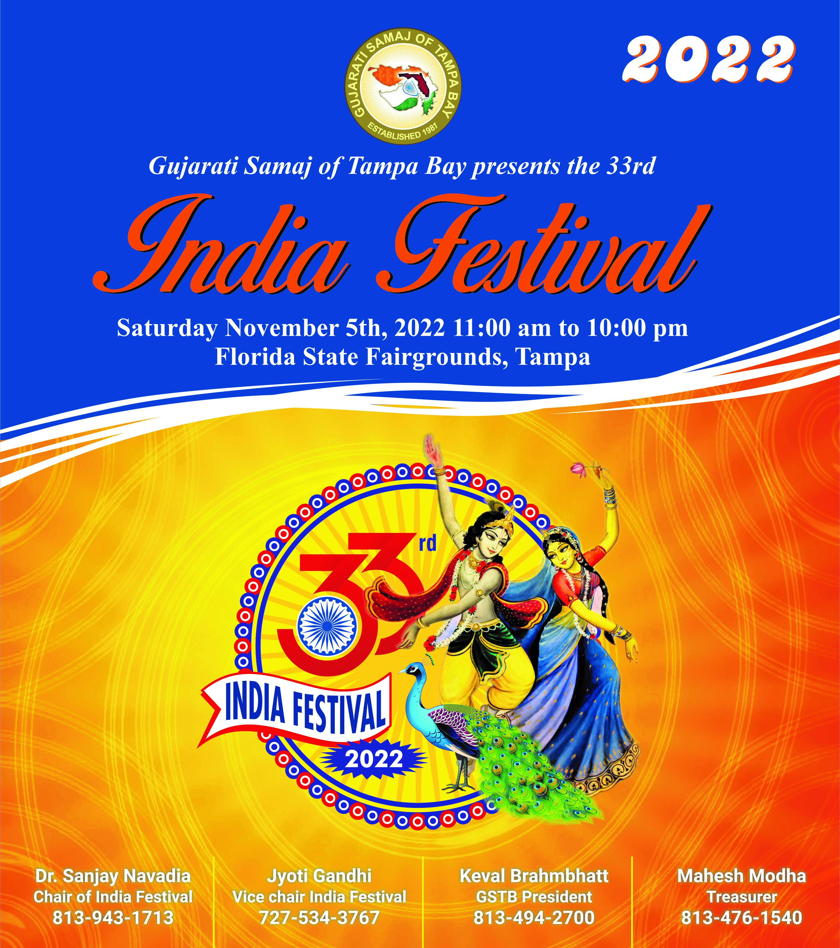 The Gujarati Samaj of Tampa Bay will celebrate Navratri on Oct. 7-8 with Garima Khiste as performer. Garba Nights with Amit Patel’s group Disha Vrund on Oct. 14-15. Both events, which are free for GSTB members and $20 for non-members, begin at 8 p.m. at Florida State Fairgrounds, 4800 U.S. 301 N. For information, call GSTB President Keval at (813) 494-2700.