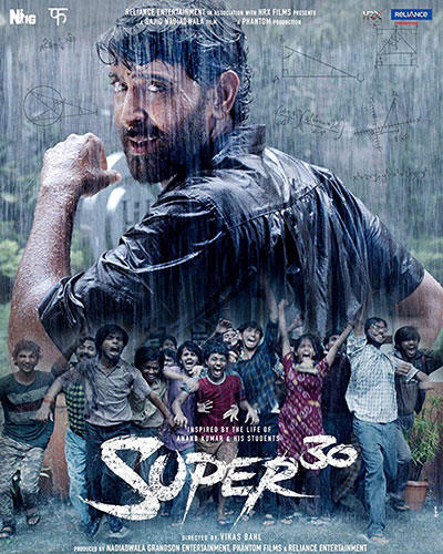 “Super 30” Starring Hrithik Roshan, Mrunal Thakur, Virendra Saxena, Pankaj Tripathi, Nandish Singh; directed by Vikas Bahl; music by Ajay-Atul.