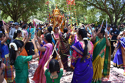 More than 2,000 devotees attended the first Brahmotsavam for Lord Satyanarayana held May 17-19 by the Hindu Temple of Florida in Tampa. Among the spiritual and devotional experiences for the devotees was carrying goddess Lakshmi and Lord Satyanarayana on Garuda vahana. The highlight was the Rath Yatra. Cultural programs included singing the Bhagavad Gita, classical dances and a flute concert by Pandit Pravin Godkhindi of India. The Brahmotsavam will be an annual event for the temple, 5509 Lynn Road.