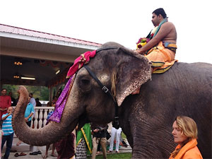 Devotees from all over Florida and beyond began arriving at the temple early Sunday. The day started with Ashwa (horse), Gaja (elephant) and Gow (cow) pooja. The horse is a symbol for the planet Mars that represents energy and command. The elephant is a symbol of respect, honor, magnanimity and power. The Gaja pooja included offering flowers and food as the priests voiced appropriate mantras and chants. This invokes the blessings of Lord Ganesha. The cow is the symbol of love and symbolic of the Planet Venus.