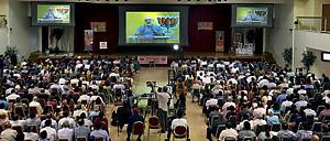 Gujarat Chief Minister Narendra Modi for the first time as NDA’s prime ministerial candidate addressed the Indian diaspora via live satellite during the concluding session of two days National Convention of Overseas Friends of BJP (OFBJP) – USA on Sept. 21. The telecast was facilitated by TV Asia across USA, Canada, Europe and India. More than 1,500 people were assembled at the India Cultural Center (ICC) hall to listen to his speech.